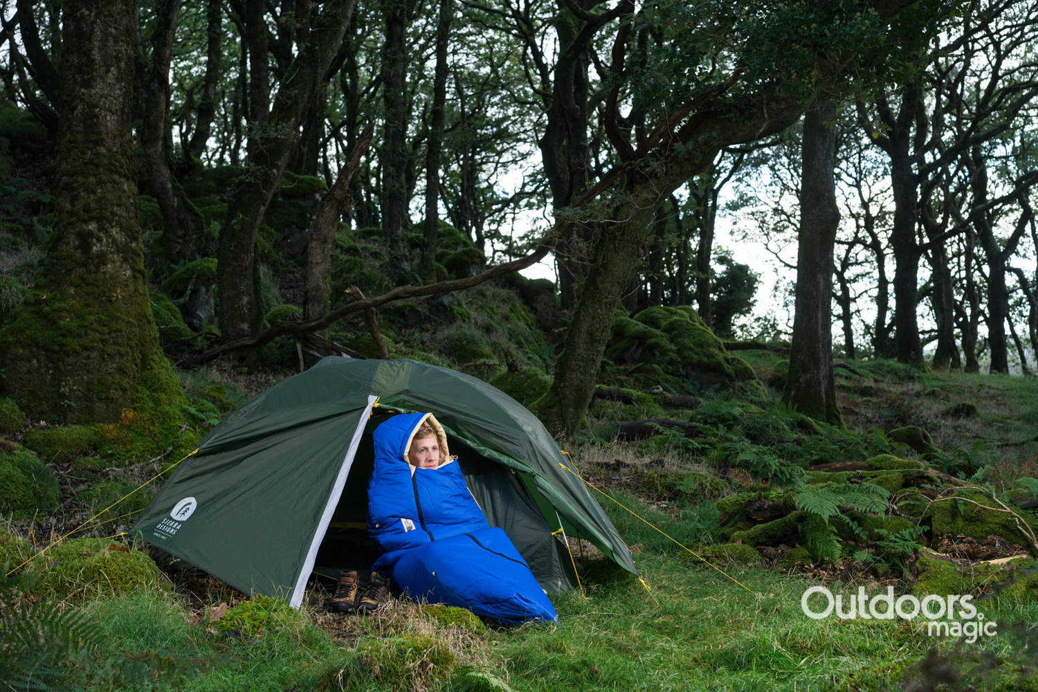 The sleeping bag includes a fitted hood, draft collar, and anti-compression layer to retain heat effectively.